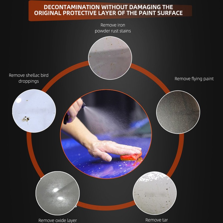 استفاده آسان دارای ظرف نگهدارنده از بین برنده‌ی هر نوع آلودگی قابلیت چند بار استفاده از محصول قابل استفاده روی قسمت های مختلف خودرو از جمله بدنه، شیشه، پلاستیک و فلز کیفیت ساخت بالا با عملکرد سریع و موثر