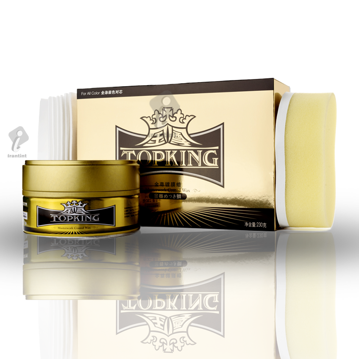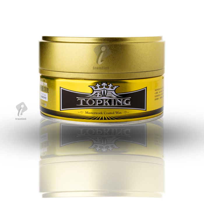 واکس براق کننده و آبگریزکننده جامد تاپ کینگ مخصوص بدنه خودرو مدل Paste Wax TopKing حاوی پلیمر و کارناوبا بوده و سطح خودرو شما را براق و شیشه‌ای می‌کند و با ایجاد لایه نازک بر روی آن از آن در برابر عوامل محیطی همچون فضولات پرندگان و  حشرات، بارانهای اسیدی، برخورد سنگ، شن، ماسه و تابش نور خورشید و  … محافظت می‌کند. واکس براق کننده و آبگریزکننده جامد تاپ کینگ مخصوص بدنه خودرو مدل Paste Wax TopKing لکه‌های آب روی خودرو را از بین می‌برد. واکس براق کننده و آبگریزکننده جامد تاپ کینگ مخصوص بدنه خودرو با فرمولاسیون ترکیبی کارناوبا و پلیمر حداکثر حفاظت ، دوام ، عمق رنگ و بازتاب را در یک مرحله آسانبه خودرو شما ارائه می‌کند. پلیمرهای مصنوعی پیشرفته واکس سبب ایجاد درخشش عمیق و شیشه‌ای بدنه خودرو می‌شود. این محصول لایه محافظتی طولانی مدت بر روی تمام خودروهای نقاشی شده و سطوح پاک شده ایجاد می‌کند و از اثرات مخرب اشعه فرابنفش خورشید جلوگیری می‌کند. واکس TopKing پس از استفاده هیچ نقطه و ذره پودری بر روی سطح بجا نمی‌گذارد. این محصول قابلیت اجرا بصورت هم دستی و هم با دستگاه پولیش اجرا دارد. طرز استفاده: در ابتدا برای رسیدن به بهترین نتیجه، محصول باید بر روی سطح تمیز اجرا شود. خودرو خود را به چند قسمت تقسیم کرده و از یک قسمت مثلا کاپوت شروع به کار نمایید. یک دستمال تمیز مایکروفایبر یا پد کاربردی را به واکس براق کننده و آبگریزکننده جامد تاپ کینگ آغشته نموده و محصول را بر روی سطح پخش نمایید. سپس دستمال و یا پد را برگردانید و از روی تمیز آن، سطح را تمیز نمایید تا به درخشش مورد نظر برسید.