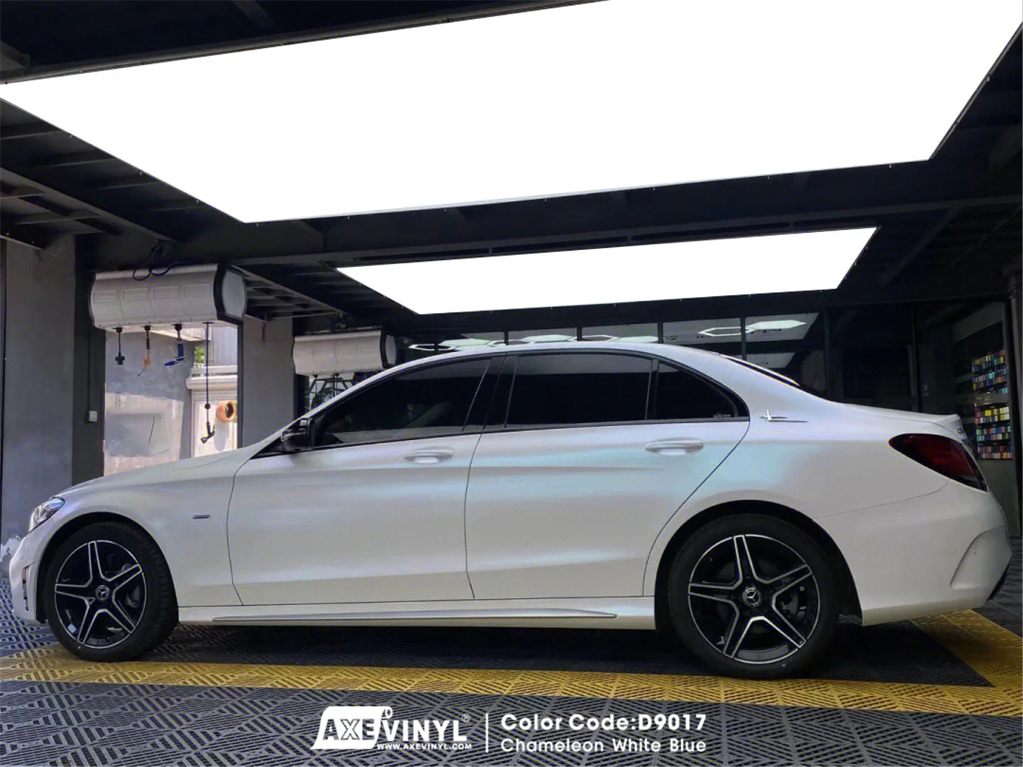 کاور رنگ بدنه خودرو سفید آبی براق آکس وینیل Axevinyl Chameleon White Blue D9016