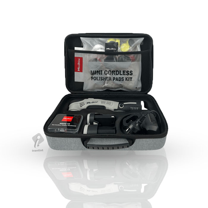 کیت کامل دستگاه پولیش مینی ایبرید مکس شاین مدل Maxshine M0312 Mini Cordless Polisher، یک دستگاه پولیش با سایز کوچک و قابلیت کارکرد به صورت بی سیم و برخورداری از سرعت چرخش ۲۵۰۰ تا ۶۰۰۰ دور در دقیقه و وزن کم است. امکان پولیش کردن نقاطی از خودرو با دسترسی سخت را برای دیتیلر فراهم میکند.